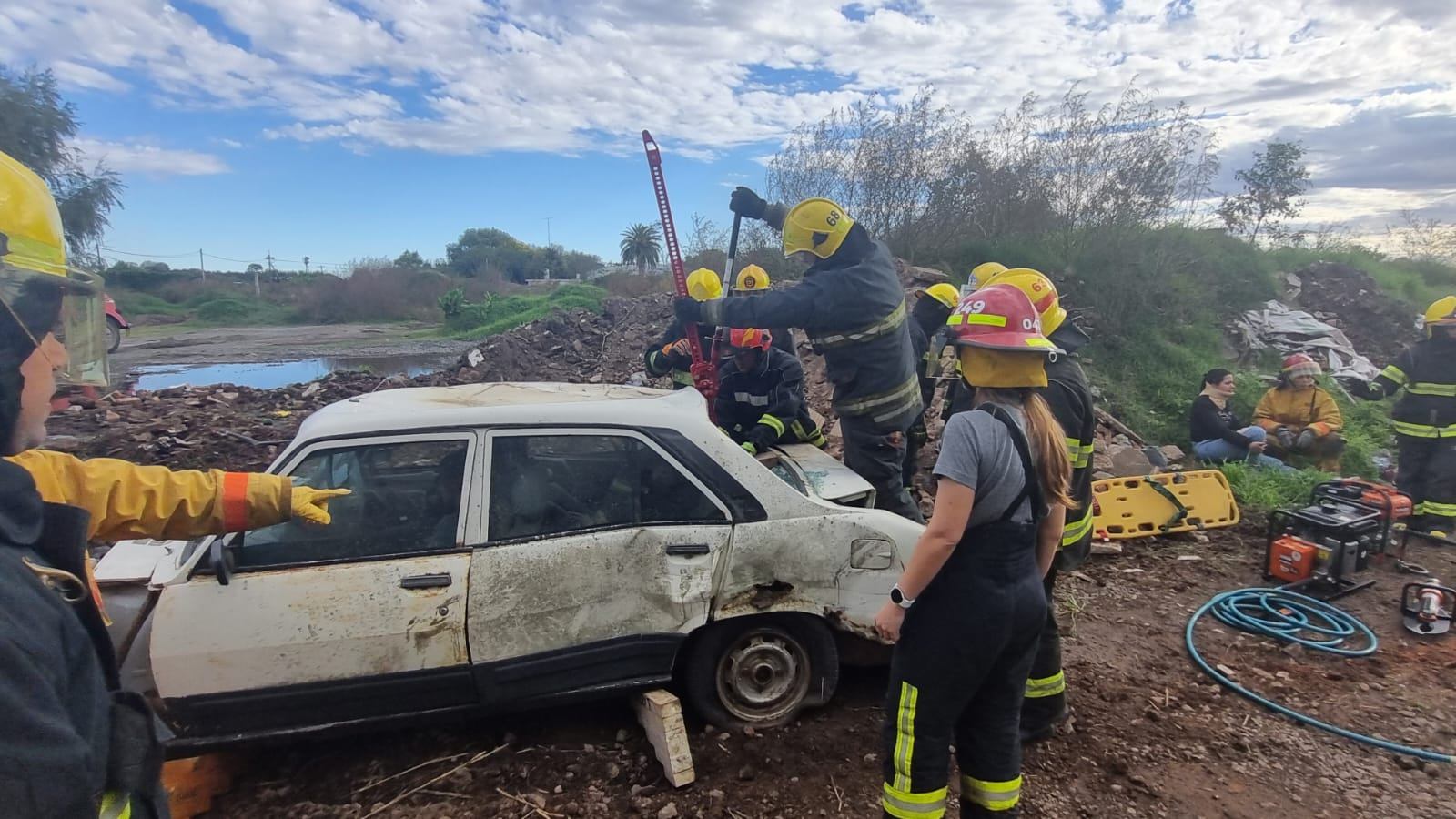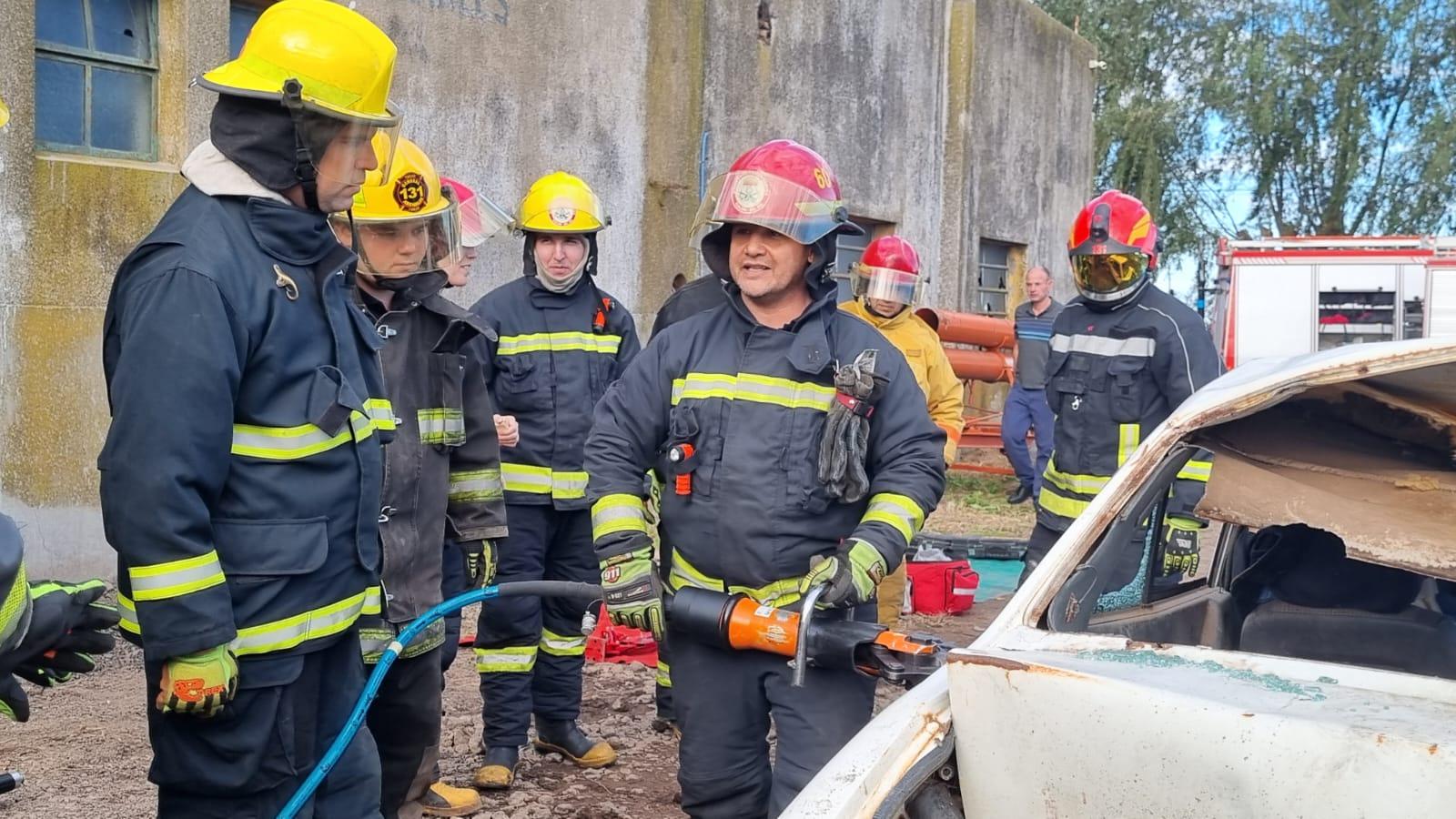 La temática abordada fue Rescate Vehicular y la capacitación estuvo a cargo de los referentes de la especialidad, Cristian Accastello y Marcelo Torres, quienes en carácter de instructores, brindaron conceptos teóricos en una charla previa realizada en aulas de cuartel, para luego trasladarse al Corralón Municipal, donde se realizaron maniobras de corte de vehículos con herramientas hidráulicas.